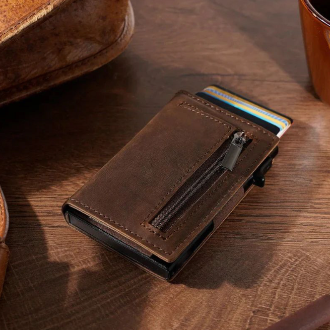 Inteligentný dizajn luxusnej pop-up peňaženky poskytuje množstvo úložného priestoru bez objemu tradičných peňaženiek. Kompaktná veľkosť vám umožňuje používať ju hneď, zatiaľ čo sa rozlúčite s nafúknutými vreckami.